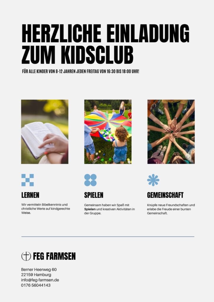 Kidsclub trifft jeden Freitag von 16:30-18:00 Uhr. Alle Kinder 8-12 Jahre alt sind herzlich eingeladen!